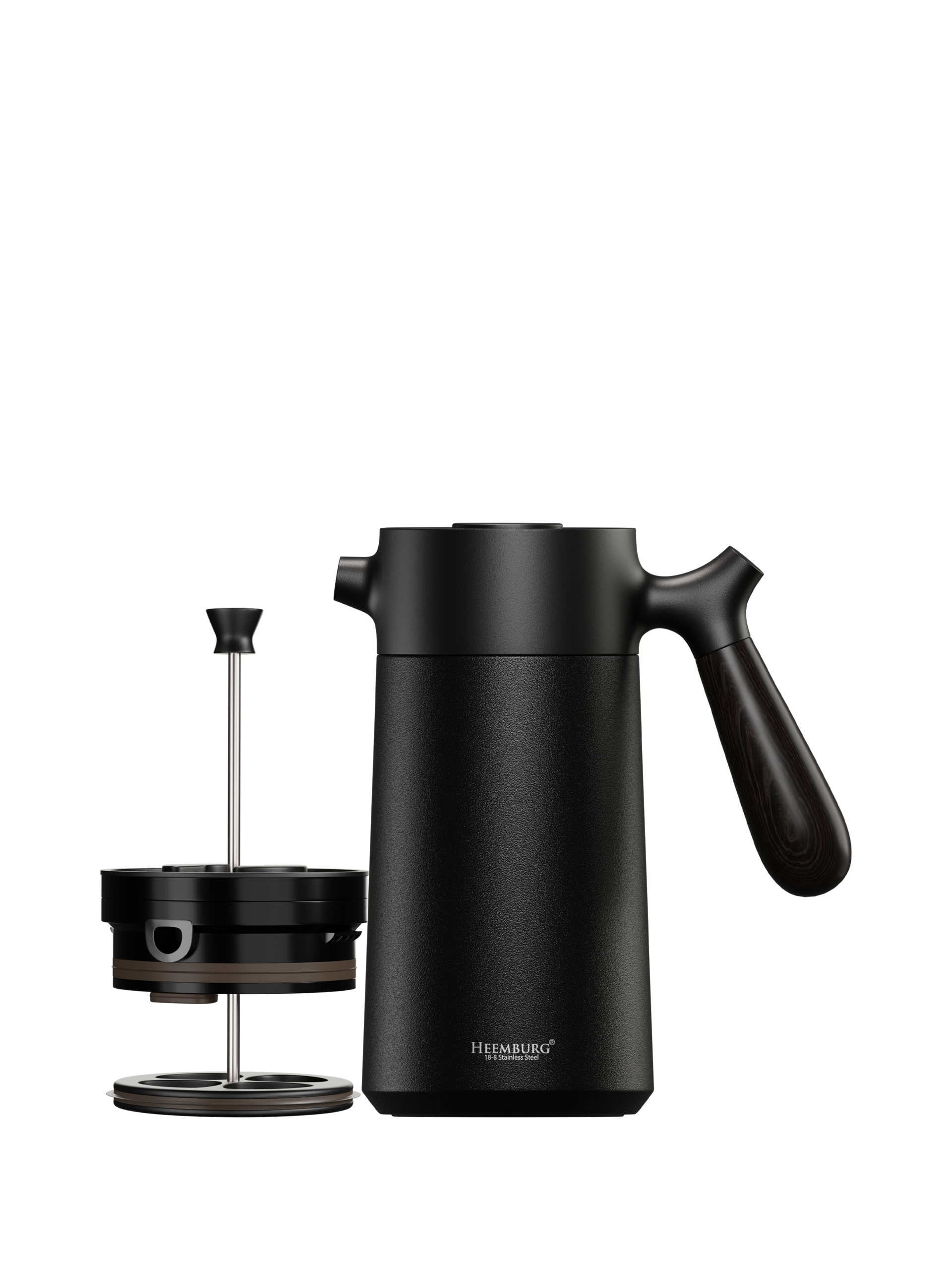 Heemburg French Press Coffee Maker Cafetiere Thermo Double Wall Insulated Vacuum Stainless Steel Manual Brewer (Black)